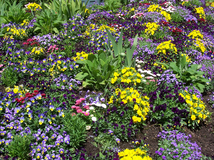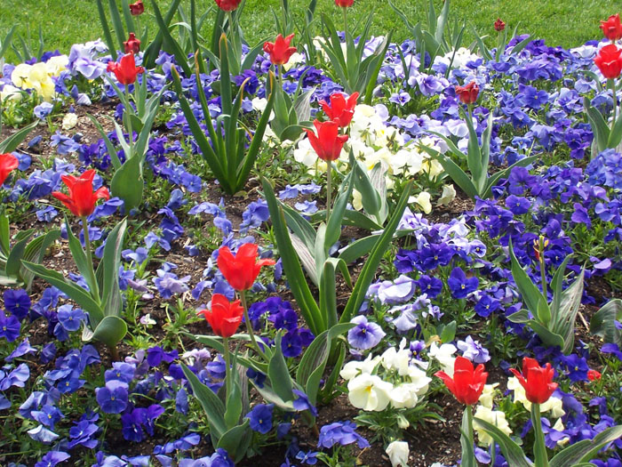 After removal of the tulips, late spring flowers are planted