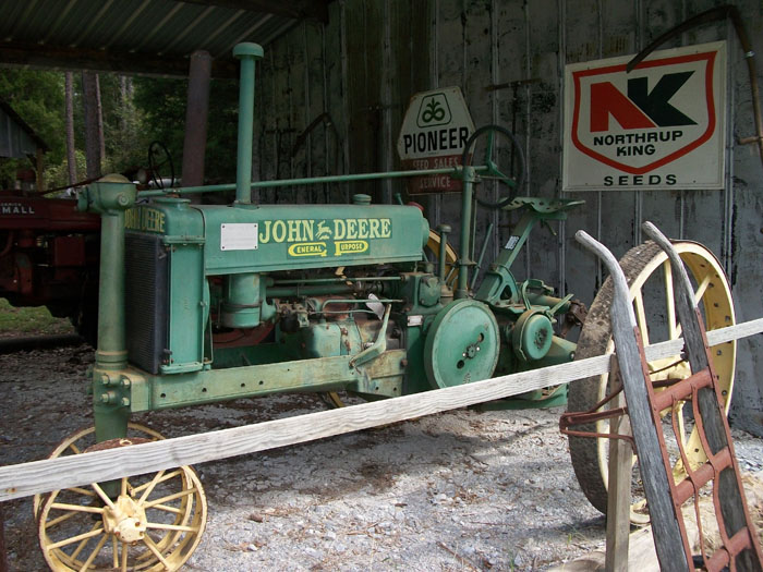 Surrounding the museum were many examples of fine, old farm equipment. Note the really odd stearing gear on this example.