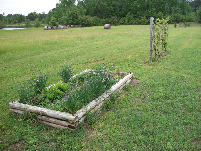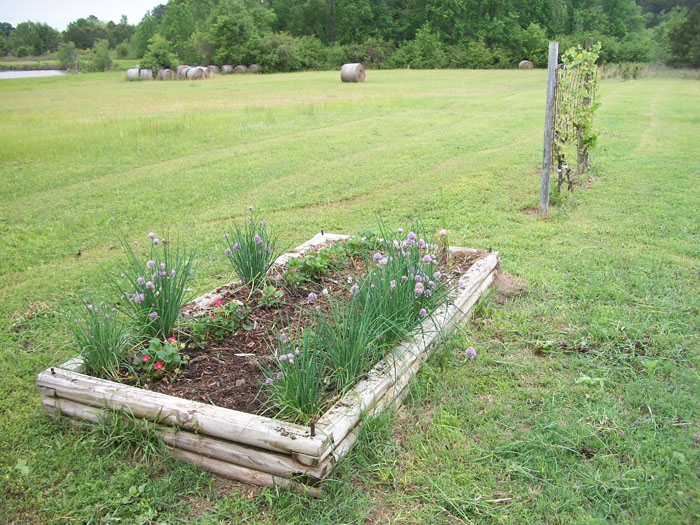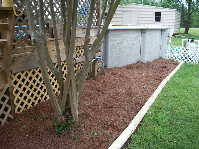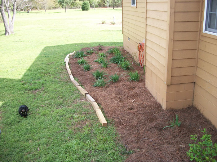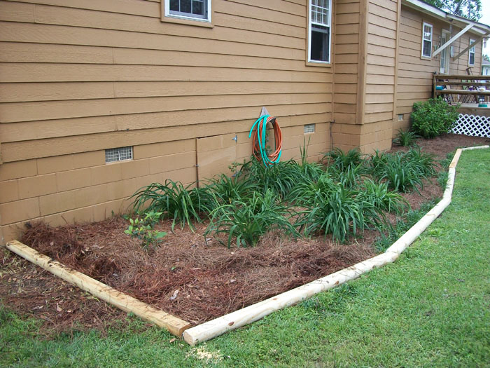 The other flower beds are bordered with landscape timbers. They're in the next photo.