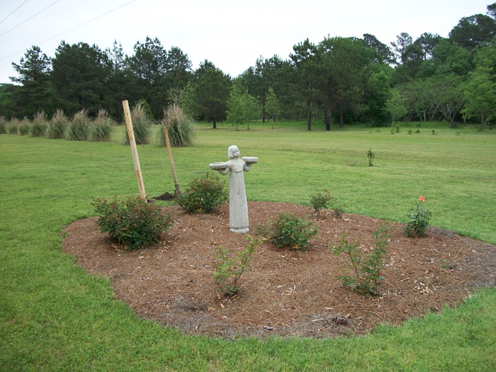 You may recall I wrote about the Bird Girl in the new rose garden. Linda had to