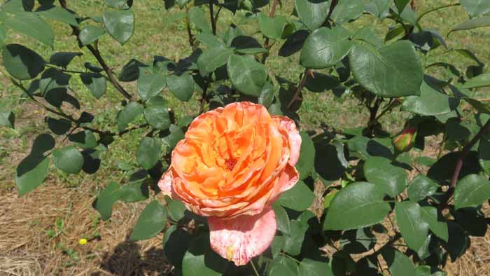 A closeup of it reveals that it's a different type of rose than the usual ones.