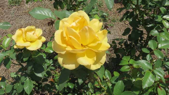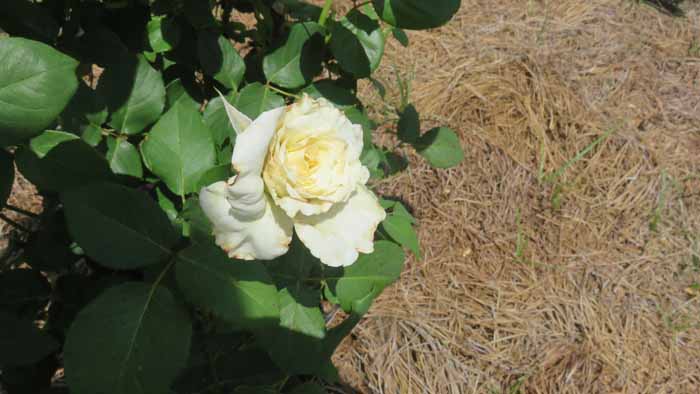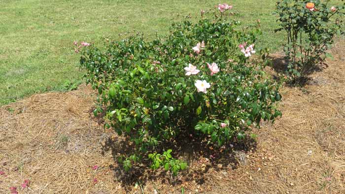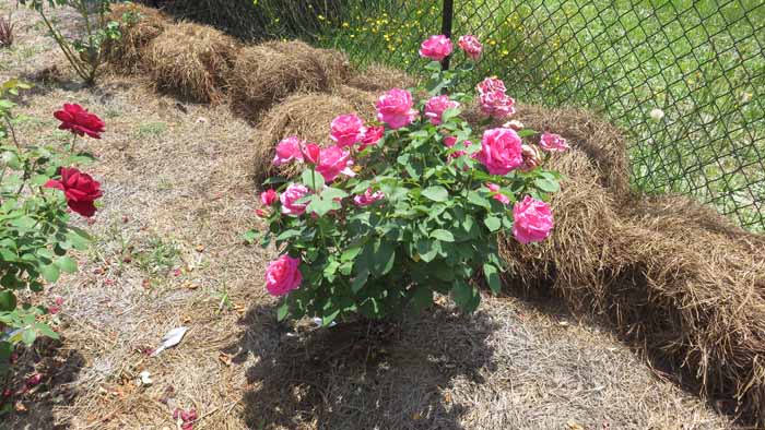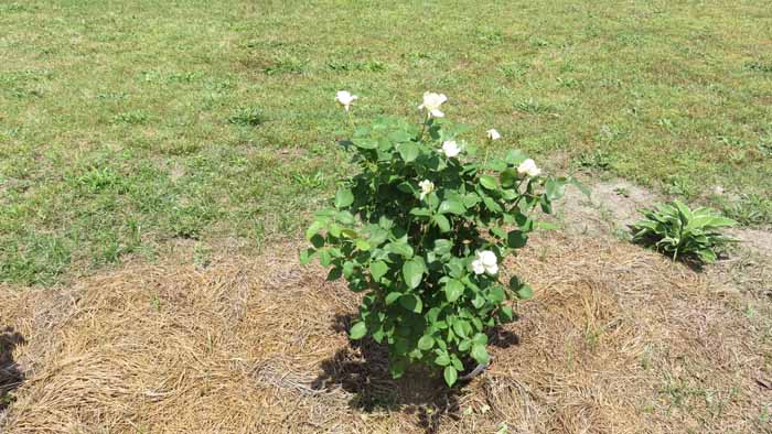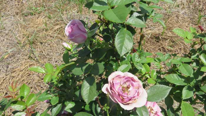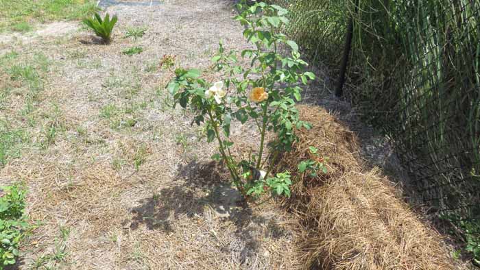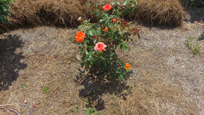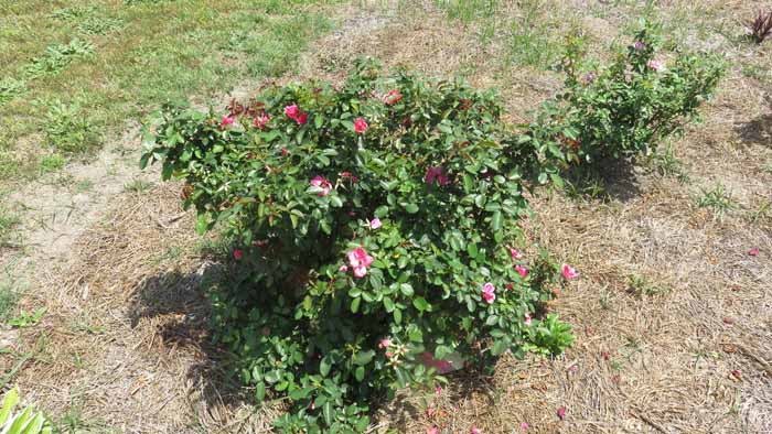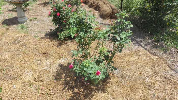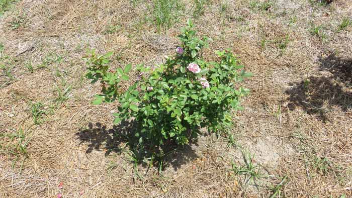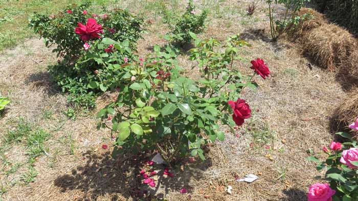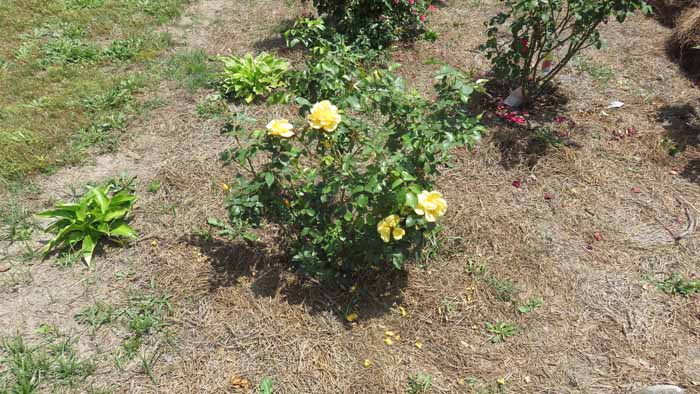 an are of Linda's rose beds she hasn't yet decided what she wants to fill in with.