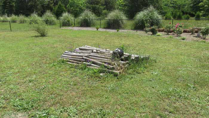 The landscape timbers in the foreground are free to a good home. We promised them to my