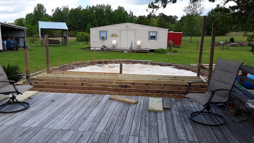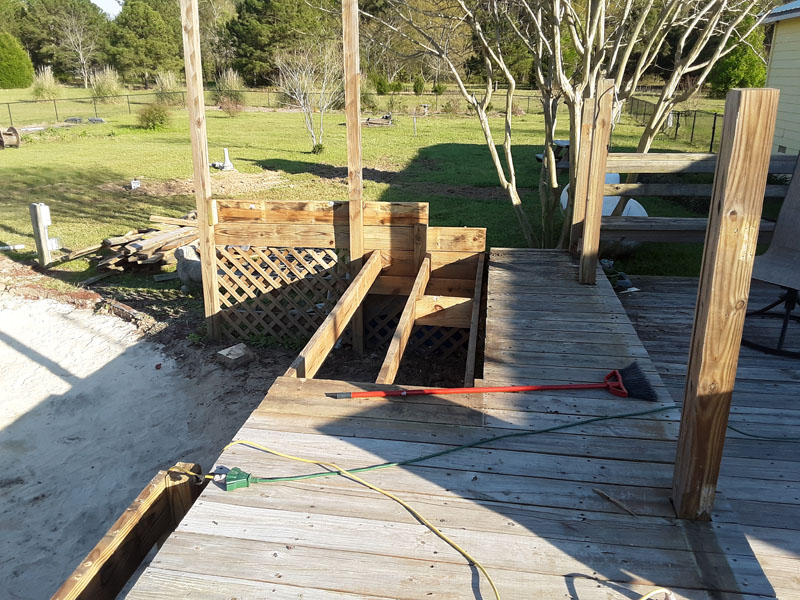 As you can see, the part of our deck closest to the pool was built in 3
