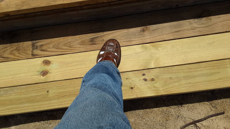 One friend asked me about the steps. They're wide a low -- three 2x6s. I have a large (size 10-1/2)