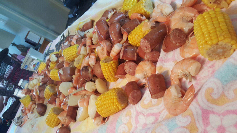 for Mothers Day. We had the Low Country Boil but the rain kept us off the deck. We were forced to have