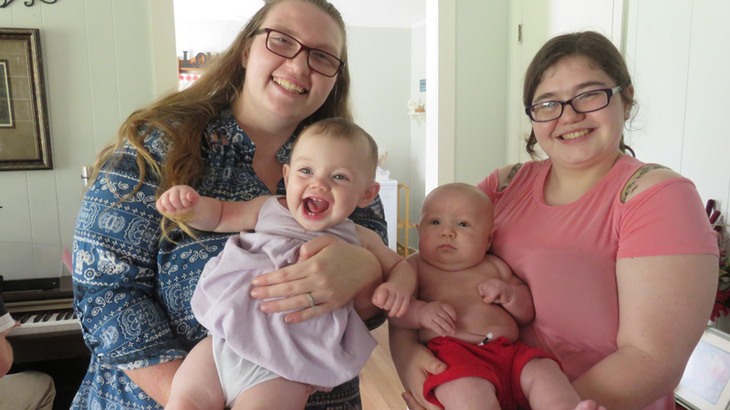 Here's a photo of two of our newest great-grands and their mommies who came to our Mothers Day party.
