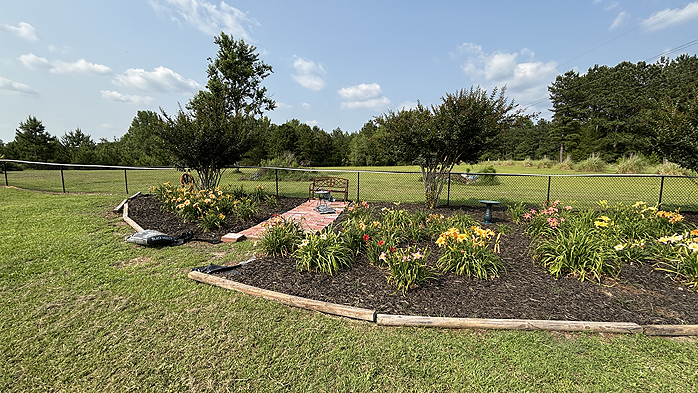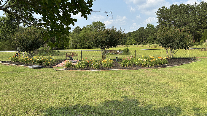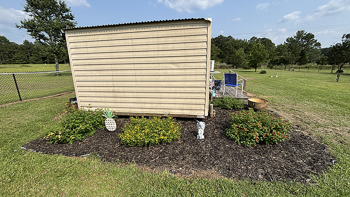 When she finished the daylilie bed, Linda tackled the Lantana flowers around her She Shed.