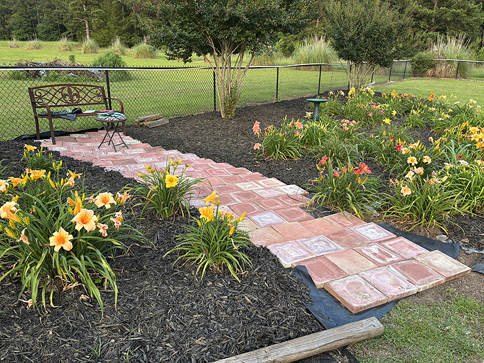 Linda worked for two months a little at a time weeding her daylilie bed, putting down